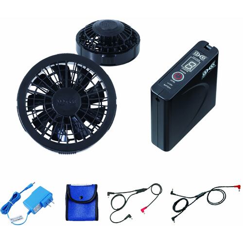 セット内容・付属品 | バッテリー、充電アダプター、ケーブル、ファン2個、バッテリーケース |