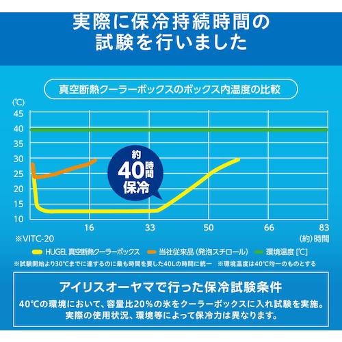 保冷力が高く、特に全面に真空断熱パネルを使用しているので、約40℃の環境下において約40時間保冷状態を保てるため、長時間のアウトドアシーンにも適しています。
