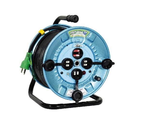 - 電線を全て引出さなければ通電しない安心・安全な電工ドラムです。